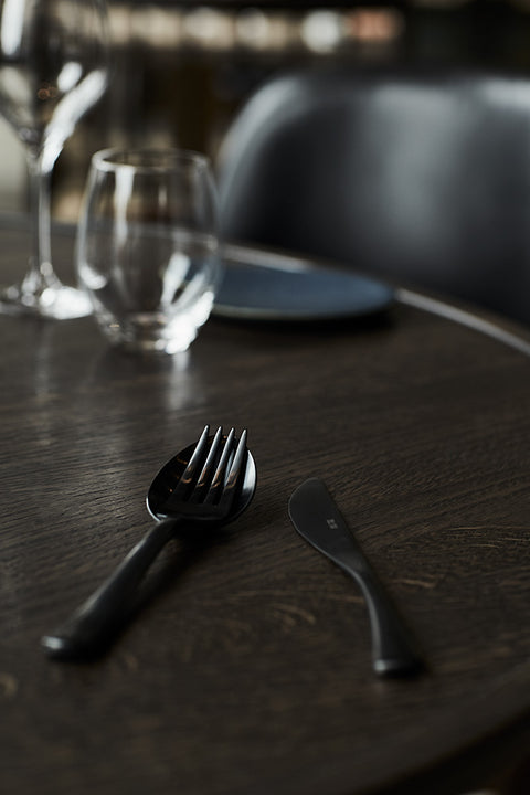 The 108 cutlery in the NOIR variant is produced in 18/10 stainless steel with BlackSatin Matte PVD finish and is dishwasher safe. The Cutlery is produced in the absolut best quality, steel material, polishing and even the coating so it will be with you for many years to come.